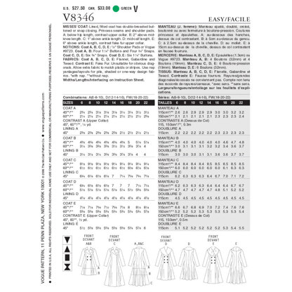 Vogue Misses Coat V8346 Sewing Pattern Lovecrafts